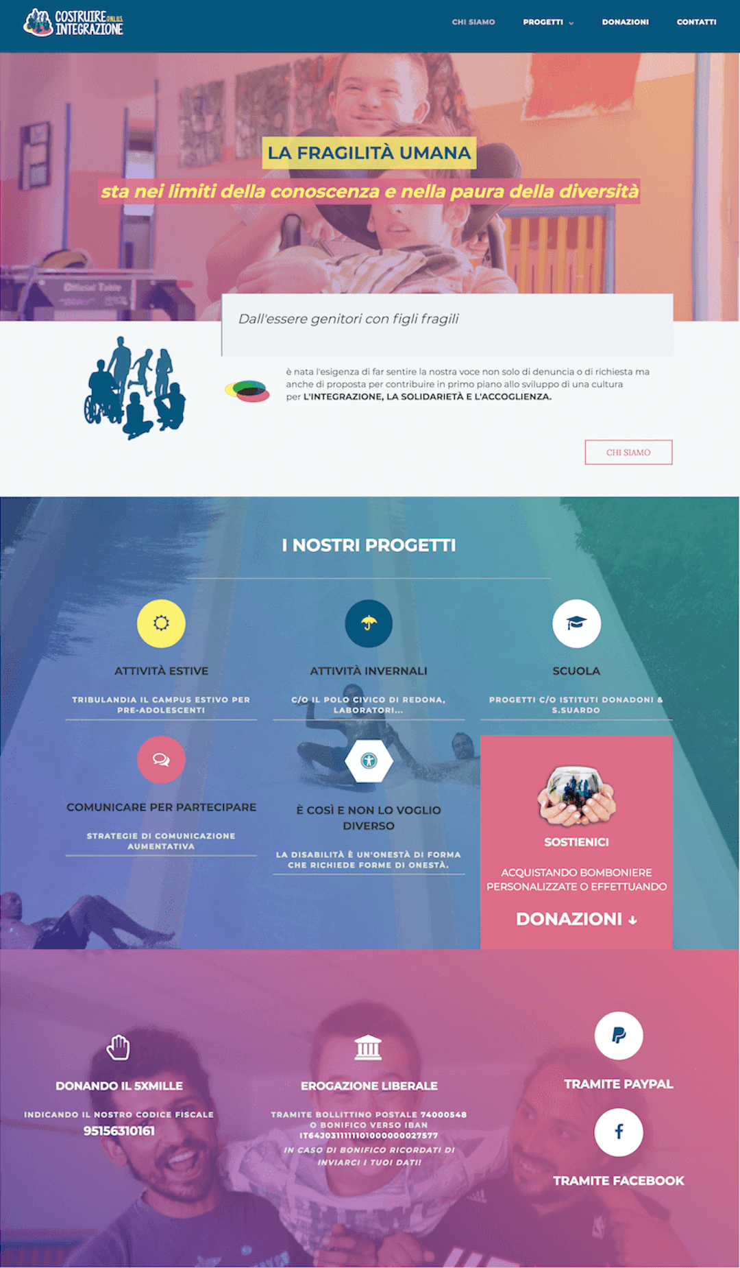 Il sito raccoglie informazioni sui progetti, sulle modalità su come donare e dare il proprio contributo partecipando come volontario o educatore